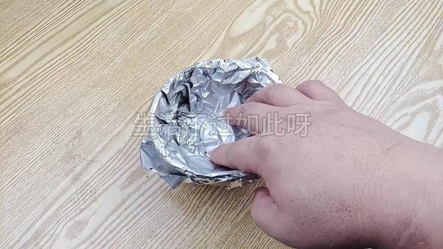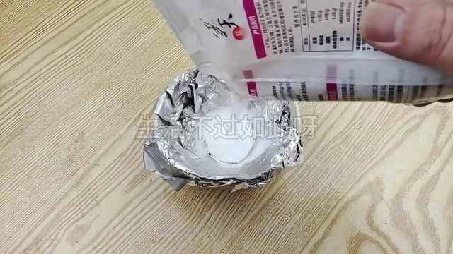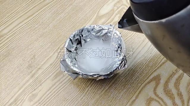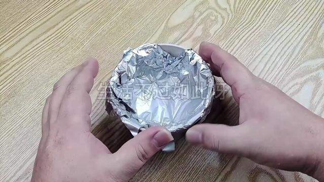 首先,取一張錫紙并將其壓成碗的內凹形狀,然后將其放在碗里。