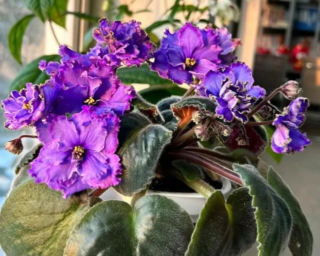 茉莉花小巧玲瓏,白色的花朵星星點(diǎn)點(diǎn)地散布在深綠的葉叢中,散發(fā)著沁人心脾的清香。夜幕降臨時(shí),茉莉花的香氣更加濃郁,為夜晚增添了一份神秘與浪漫。茉莉花喜歡生長(zhǎng)在溫暖陽(yáng)光充足的環(huán)境中,溫度較低的話,會(huì)使它進(jìn)入休眠,一旦春暖花開(kāi),便會(huì)恢復(fù)生長(zhǎng),必須綻放色彩。現(xiàn)在放在溫室內(nèi)的茉莉花,能生長(zhǎng)狀態(tài)并不理想,那如果你剪下健壯的枝條,插到土壤里,也可以快速生根,成為一個(gè)新的個(gè)體,完成生命的延續(xù)。 第五種,非洲紫羅蘭