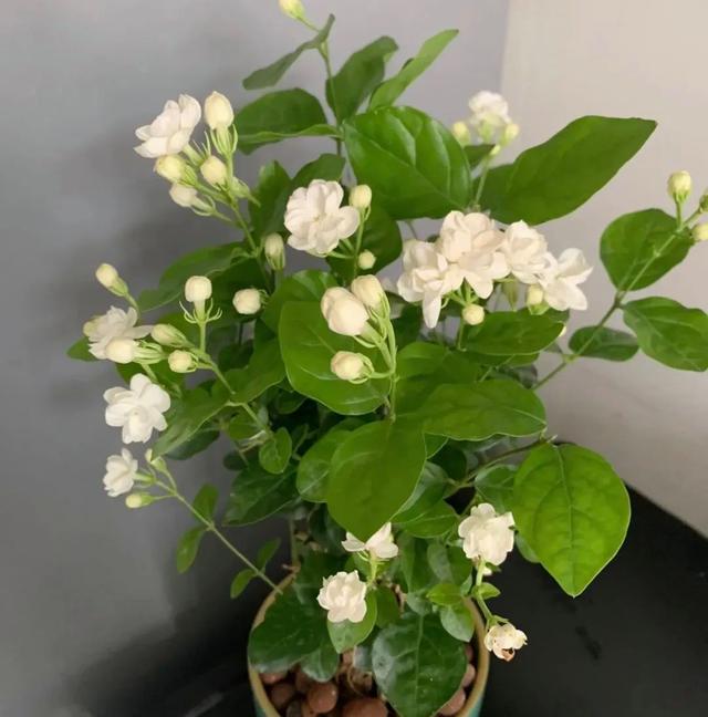 繡球花的花色是多變的,這種變幻莫測(cè)的狀態(tài),也成為了許多養(yǎng)花人的寵兒。花序由無(wú)數(shù)細(xì)小的花朵緊密組合而成,顏色隨土壤的酸堿度而變化,從粉藍(lán)到深紫,再到浪漫的粉紅,宛如自然界的調(diào)色盤。繡球花的花期長(zhǎng),枝葉繁茂,是優(yōu)雅庭院和室內(nèi)花壇的理想選擇。成片盛開(kāi)的繡球花,會(huì)美的讓人移不開(kāi)眼,所以你也想擁有的話,不妨用扦插的方式,讓一盆變十盆,這樣就可以打造出小花園的景象了。 如何去扦插呢?方法簡(jiǎn)單,用健康的枝條就行,提前浸泡在生根液中,取一些蛭石,因?yàn)檫@種基質(zhì)具有良好的透氣性和保水性,有利于生根更加快速。把枝條插入土壤中,靜等一段時(shí)間,慢慢的就可以發(fā)現(xiàn)變化,如新的葉片說(shuō)明已經(jīng)成活。 第四種,茉莉花