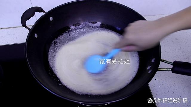 接著,我們將鍋拿起來,然后輕輕晃動,使鍋的四周都沾有食用油,要是有油刷的,也可以直接用油刷將鍋都涂滿油。把鍋的四周都涂滿了油后,就這樣用小火把它加熱一下。在這個過程中,鍋四周的油都會慢慢往下流,當(dāng)油差不多都集聚在鍋底時,我們再次晃動鍋,使鍋壁上再次沾滿油。