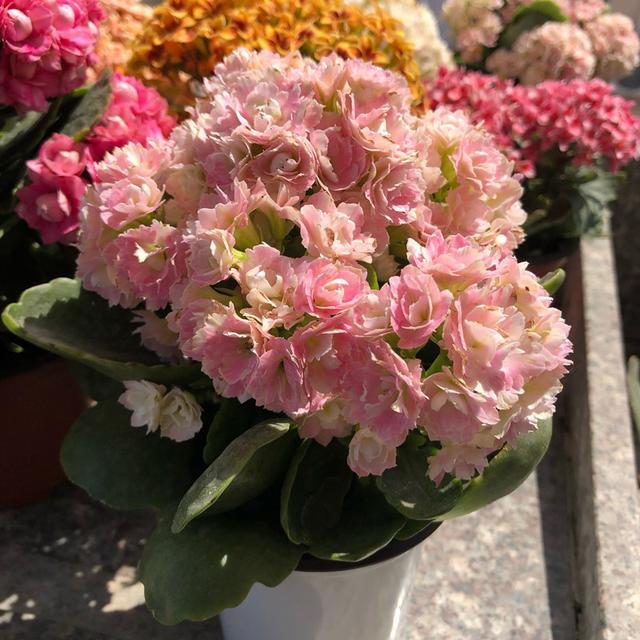 三、長(zhǎng)壽花 長(zhǎng)壽花尤其適用于陽(yáng)臺(tái)盆栽,從十一月到第二年的四月五月,養(yǎng)護(hù)的好的話,還能四季開花,一茬又一茬,如今正值盛花期,盛開的時(shí)候,一朵朵的花蕾簇?fù)碓谝黄穑兄伴L(zhǎng)壽安康,吉祥如意”的美好寓意,很受大家的歡迎。 市場(chǎng)上大部分的長(zhǎng)壽花,都是有花骨朵的,拿在手里,放在有光的地方,就能安靜的欣賞。一次開花之后,將剩余的花朵和下方1-2對(duì)還沒(méi)有成熟的小葉進(jìn)行修剪,然后再進(jìn)行一次 NPK平衡的復(fù)合肥,等到頂部重新長(zhǎng)出新芽的時(shí)候,再用磷、鉀來(lái)代替。