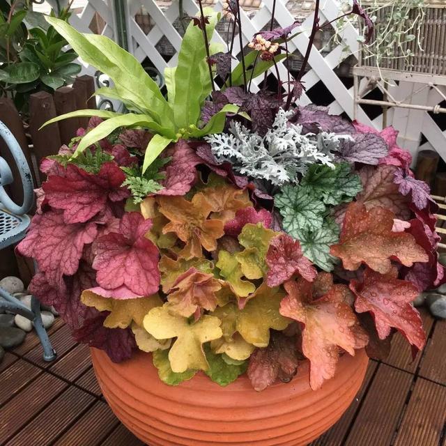 二、礬根 冬季的礬土,就像是神倒出來(lái)的調(diào)色盤,五顏六色,搭配起來(lái)更好看,還能耐低溫。 以前他在家里的院子里,就是在零下十五度到十八度之間,也能長(zhǎng)出花朵來(lái),據(jù)說(shuō),它能承受零下三十五度的低溫。 礬根的美麗不在其葉,而在其花,對(duì)半蔭性有一定的抵抗力,就算是養(yǎng)在北面的陽(yáng)臺(tái)上,也絲毫不影響觀賞的美感。夏天忌曝曬,冬天要多曬太陽(yáng),每個(gè)星期追一次 N、 P、 k平衡的復(fù)合肥,這樣植株才會(huì)更豐滿。