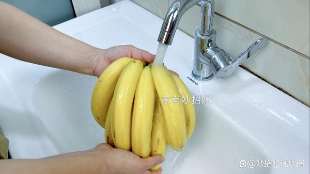 我們都知道,香蕉是特別不好保存的,就算是一不小心磕到了,隔上一天,磕到的地方就會變黑不能吃了。所以為了香蕉更好地運輸,果農就會在香蕉還未完全成熟的情況下采摘。但又為了香蕉運輸到目的地后能及時售賣,就會在香蕉的表面噴灑催熟劑,而我們買回家的香蕉表面,也是存在催熟劑殘留的。想要香蕉保存的時間更長一些,那么我們就需要將表面的催熟劑處理掉。很簡單,只需要將香蕉放在水龍頭下沖一沖,每個地方都沖到,這樣就能有效地將表面的催熟劑給清洗掉了。