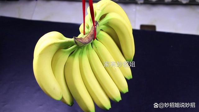 要是還想香蕉保存更長時間的話,我們還可以拿根繩子,從香蕉根部的中間穿過,然后把香蕉懸掛起來。這樣每根香蕉都可以很好的通風,而且互相之間沒有一點擠壓,就可以保存上半個月都不壞了。