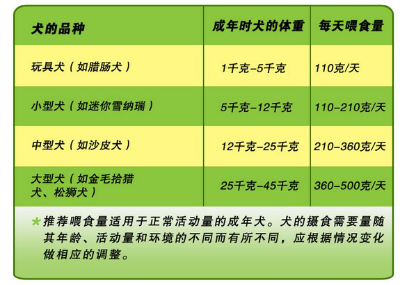 成犬建議喂食量: