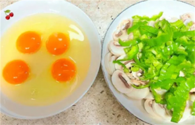 一、所需食材: 1.雞蛋:4個 2.口蘑:200克 3.青椒:2個 4.鮮雞汁:1勺 5.蠔油:半勺 6.蔥/姜:適量 7.鹽/胡椒粉/食用油:適量