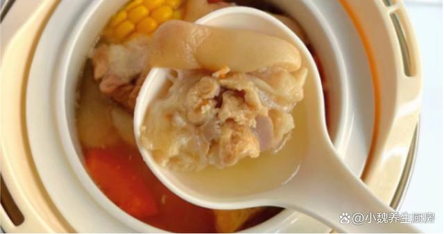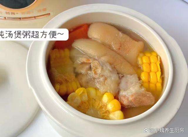 具體制作步驟: 第一步:提前選購好玉米,胡蘿卜,豬蹄和其他食材,先把玉米撕掉葉子,去掉玉米須,切掉多余的部位,切成若干塊狀,用清水沖洗幾遍,用鹽水浸泡一會兒,控干表面的水分,備用。第二步:幾個胡蘿卜反復洗凈,全部去皮切塊,大蔥和小蔥切成段,生姜切成薄片,山藥去皮洗凈,切成若干小塊,備用。第三步:豬蹄用火烤一烤,刮掉一些絨毛,反復清洗干凈,剁成若干塊狀,用流水沖洗干凈。 第四步:準備好一個燉鍋,鍋中放入一些豬蹄塊,加上冷水全部沒過食材,丟入蔥段和姜片,大火燉煮一會兒,焯水處理好,備用。第五步:準備好一個湯鍋,鍋中放入豬蹄,山藥塊和胡蘿卜,放入蔥結和姜片,加上足量的純凈水,燉大概一個小時,中途可以用勺子攪動一會兒。 第六步:讓豬蹄燉煮至Q彈,胡蘿卜和山藥都燉熟,加上半勺味極鮮,加上食鹽和胡椒粉調味,滴入一些香油。 第七步:有條件的家庭,可以放入一些紅棗和枸杞子,燜煮12分鐘即可,關火出鍋,這款玉米胡蘿卜燉豬蹄湯就烹飪完成了。 玉米胡蘿卜燉豬蹄湯是一款秋季進補的鮮湯,豬蹄含有豐富的膠原蛋白,玉米和胡蘿卜搭配燉湯,發揮食材最大的營養價值,湯汁超級鮮美,好喝不油膩,常喝能夠滋潤皮膚,讓肌膚更加光滑細膩,促進消化吸收,讓身體更加健康。 小伙伴們,你們是否學會這款玉米胡蘿卜燉豬蹄湯的正確做法嗎?(文中配圖都出自網絡)(www.ws46.cOm)