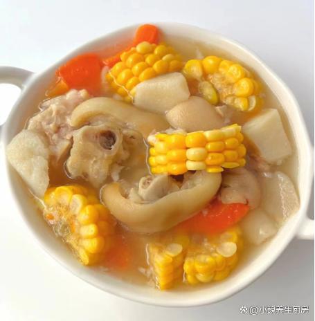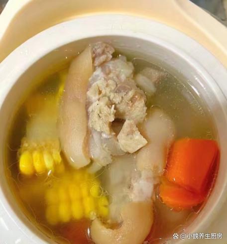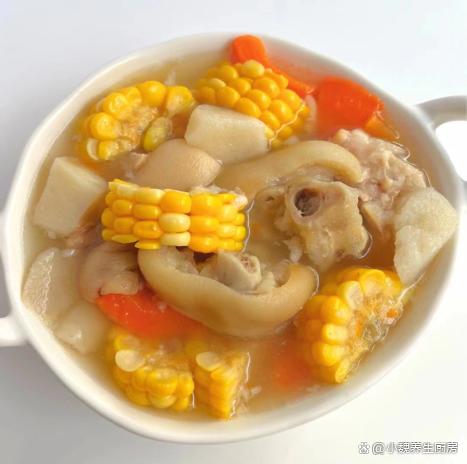進入9月底,我們要迎來中國的傳統節日——中秋節,很多地方又稱作“團圓節”,起源于古代月神崇拜,以慶祝豐盛和團圓,家人們會團聚在一起,慶祝節氣,表達對親朋好友的思念。中秋節日處于秋季的中期,早晚溫差會慢慢增大,落葉開始泛黃,氣溫開始逐漸降低,身體會出現著涼,身體特別虛弱,我們要根據季節的變化,適當給身體來補充營養,尤其是要多喝湯湯水水,更利于營養的消化和吸收。今天分享我們家晚餐的一款鮮湯——玉米胡蘿卜燉豬蹄湯,湯色非常好看,鮮美滋補,不懂吃可惜了。明日中秋,無論貧富,常給家人喝這湯,補足營養,為秋冬打基礎。  【玉米胡蘿卜燉豬蹄湯的正確做法】 準備一些食材:選購胡蘿卜100克左右,玉米1-2個(玉米是一種常見的食材,許多南方人拿來煲湯,低脂又健康,天天喝也不怕胖),選購優質豬蹄500克(豬蹄是高蛋白的食材,比雞肉豬肉營養價值高,豬蹄可以紅燒或燉湯,豬蹄非常Q彈,燉湯非常鮮美滋補,女性朋友一定要常吃它),純凈水若干,山藥200克,若干根小蔥,生姜12克左右,冷水少許,少許食鹽,胡椒粉半勺,其他調味品。