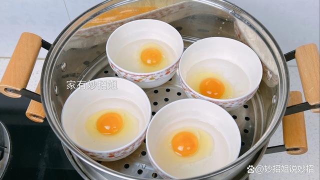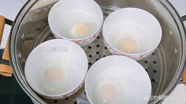 接下來,我們再將雞蛋分別敲到每個碗中。碗中先加水,可以避免雞蛋出現粘碗底的情況,等煮好就能更好的脫模了。而剛剛加入白醋的目的,是因為雞蛋會有一點腥味,白醋就有去腥味的作用,我們只是加入一兩滴白醋,也不用擔心會使口感變酸,反而還會讓雞蛋的口感更加嫩滑無腥味。