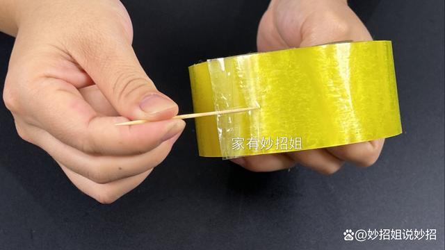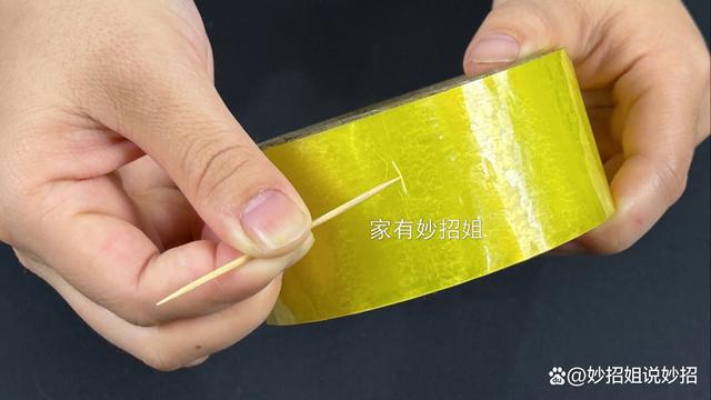 當我們找到膠帶頭后,還可以利用牙簽在膠帶頭的地方戳一戳,把膠帶挑起來一點,這樣我們再來扯膠帶,就非常的輕松了。