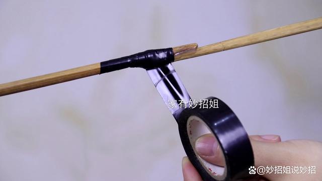 等熱熔膠完全冷卻后,我們用膠布在兩根筷子的連接處多纏繞一些,由于疏通馬桶要接觸到水,這個膠布就最好是使用防水膠布。這一步的目的就是為了使兩根筷子連接更加穩固,以免在使用的時候出現斷掉的情況。