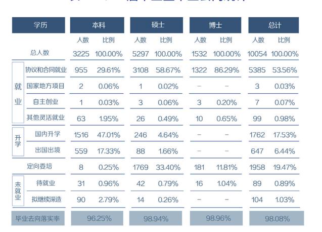 看了一下復(fù)旦大學(xué)2021屆畢業(yè)生的就業(yè)情況,哎呀,看來(lái)這復(fù)旦大學(xué)的畢業(yè)生就業(yè)情況可是相當(dāng)可以啊! 首先,咱們看看這人數(shù),2021屆畢業(yè)生可是一共有10054人呢!其中本科畢業(yè)生3225人,碩士畢業(yè)生5297人,博士畢業(yè)生也不少,有1532人。這人數(shù)可真是堪比一場(chǎng)大戰(zhàn)啊! 再來(lái)說(shuō)說(shuō)這就業(yè)情況,截至2021年10月31日,整體畢業(yè)去向落實(shí)率可是高達(dá)98.08%!其中本科生畢業(yè)去向落實(shí)率為96.25%,碩士生為98.94%,博士生也不甘示弱,達(dá)到了98.96%。看來(lái)大家都是找工作的高手啊!