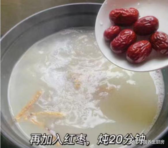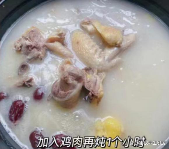 (www.ws46.coM) 7:加上幾大碗開水,蓋上鍋蓋燜煮3分鐘左右,放入黨參,紅棗,雞肉和姜片,繼續燉一個小時,讓湯汁燉煮至奶白色。