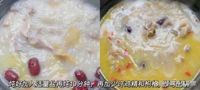 8:放入一些枸杞子,加上食鹽和其他佐料,關火出鍋即可。 除了口感鮮美之外,這道菜還具有很好的營養價值,豬肚含有豐富的蛋白質、脂肪、鈣、磷等營養成分,雞肉則富含氨基酸、脂肪、鈣等,而胡椒則具有溫中散寒、健胃消食等功效,湯汁鮮美,暖胃健脾,促進消化功能,改善睡眠的質量。 小伙伴們,你們是否喝過這款胡椒豬肚雞湯嗎?(全文配圖都來自網絡)