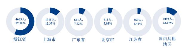 就業(yè)地區(qū)除了單位性質(zhì),我們再來看看他們的就業(yè)地區(qū)選擇。在這個問題上,浙江大學(xué)的畢業(yè)生們表現(xiàn)出了明顯的地域傾向性。 有57.10%的人選擇了留在浙江工作,這表明浙江籍的畢業(yè)生們對家鄉(xiāng)的熱愛和對浙江經(jīng)濟的認(rèn)可。 緊隨其后的是上海市、廣東省、北京市等發(fā)達省市,占比共計29.53%。同時,也有相當(dāng)一部分人選擇了江蘇等其他省份,這些省份由于經(jīng)濟發(fā)展迅速,對人才的需求也日益增長。