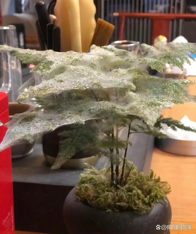 文竹結蜘蛛網了?其實是紅蜘蛛,趕緊噴藥,晚了沒救了!