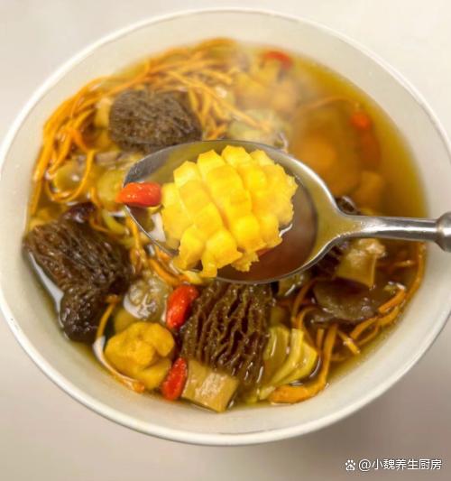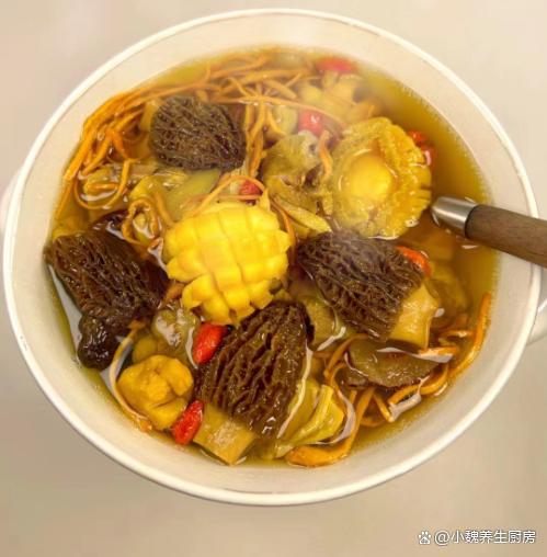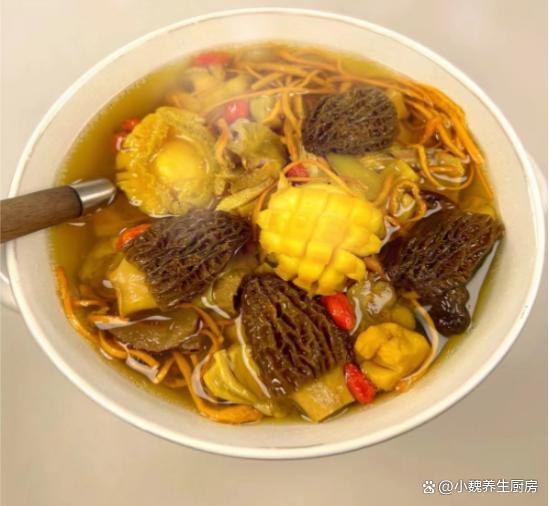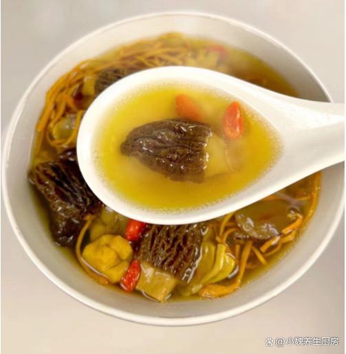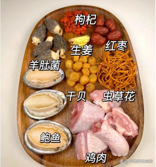 秋天來到了中期,我們馬上要迎來十月份,感覺時間過得超級快,秋天悄悄地來臨了,寒風瑟瑟,這段時間都在下雨,雨水增多,空氣里很潮濕,因此溫度開始降低。由于秋季處于夏季和冬季的中間,秋冬季節屬于陰冷的天氣,氣候非常惡劣,加上消化功能減退,食欲減退,我們需要及時補足能量,才能夠安穩度過秋冬季節。許多南方人愛煲湯,各種肉類和食材都是煲湯的首選,今天準備用雞肉,鮑魚,羊肚菌和蟲草花制作一款鮮湯——羊肚菌鮑魚燉雞湯,湯汁超級鮮美,喝起來很滿足。秋季喝湯,內行人愛喝“這湯”,湯汁鮮美,補氣養血,臉色更紅潤。  【羊肚菌鮑魚燉雞湯的正確做法】 選購一些食材:選購優質羊肚菌60克左右(羊肚菌是一種珍貴的食用菌,因其形狀像羊肚而得名,屬于高蛋白、低脂肪的食品,含有豐富的營養成分,在國內外市場上都備受青睞,食藥價值極高,能夠滋補肝腎和氣血,增強身體免疫力),鮑魚幾個,200克雞肉,干貝35克左右,若干個紅棗,生姜一大塊,蟲草花20克,冷水少許,溫水適量,枸杞子20克,食鹽少許,胡椒粉半勺,其他調味品。