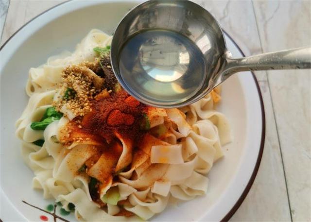 一道美味的油潑面就這樣完成了!勁道爽口的面條搭配香辣解饞的調料,無論是早餐還是晚餐,都是絕佳的選擇。趕緊試試吧!記得注意兩個細節哦! |