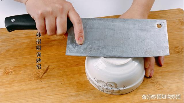 然后,拿著菜刀順著一個方向在陶瓷碗的圓臺上進行磨刀。記住,一定要順著一個方向磨刀,不可以來回磨,否則會因為力度不同而傷害到刀刃。每面大約三分鐘后,你會發現菜刀已經變得非常鋒利了。