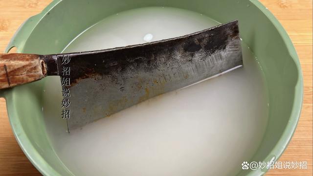 然后,我們將生銹的菜刀放到淘米水中浸泡。浸泡的時間大約需要3個小時左右。在這個時間段內,淘米水中的淀粉和礦物質會慢慢滲透到菜刀的鐵銹中,與鐵銹發生化學反應,從而將鐵銹溶解掉。