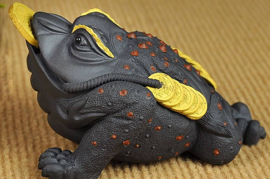 至于吐金的金蟾,它的頭頂不能懸有房梁,也不能面朝門窗,不能面朝魚缸或者衛生間等帶有流動意義的擺設,最好不要對著掛鐘。這樣財富才能被你完全鎖定。