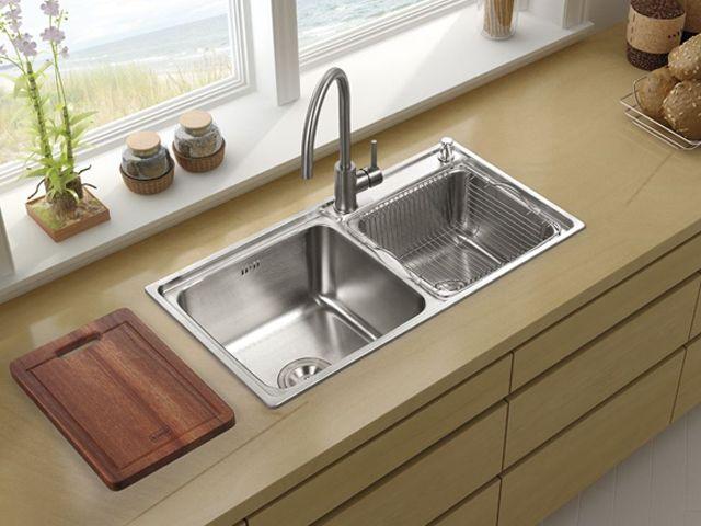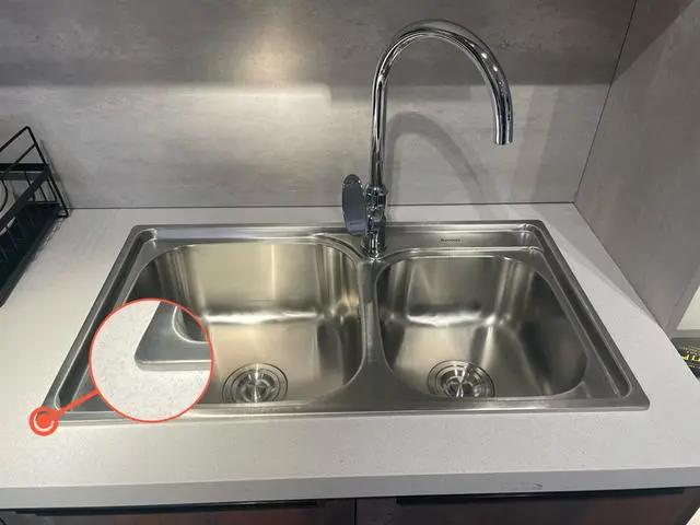而且,不管有沒有膠水,水槽和桌子表面的接觸,都會成為細菌和污垢的“安樂窩”。就算是防霉膠,也沒有多大效果。 安裝水槽時,必須選用臺面式的臺面,無縫隙,也就減少了許多藏匿污垢的“場所”。