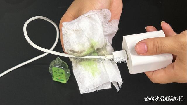 其實想要將數據線擦拭干凈,我們就可以用風油精來幫忙,先準備一張衛生紙,在紙巾上滴幾滴風油精,接著把滴有風油精的紙巾包裹住數據線,然后來回的擦拭一下。風油精中的油性成分就具有很強的清潔作用,可以溶解數據線上的污漬。經過擦拭就可以看到,數據線被擦拭得干干凈凈的了,恢復了原來的白色。
