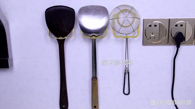 妙用三:收納餐具。 我們除了把提手放在廚房里收納百潔布和鋼絲球,也可以用它來收納廚房里的鍋鏟、漏勺之類的。只需要用熱熔膠把提手粘在廚房的墻壁上,然后把鍋鏟、漏勺等插在提手里就可以了,非常的簡單實(shí)用,而且拿取的時候也很方便。