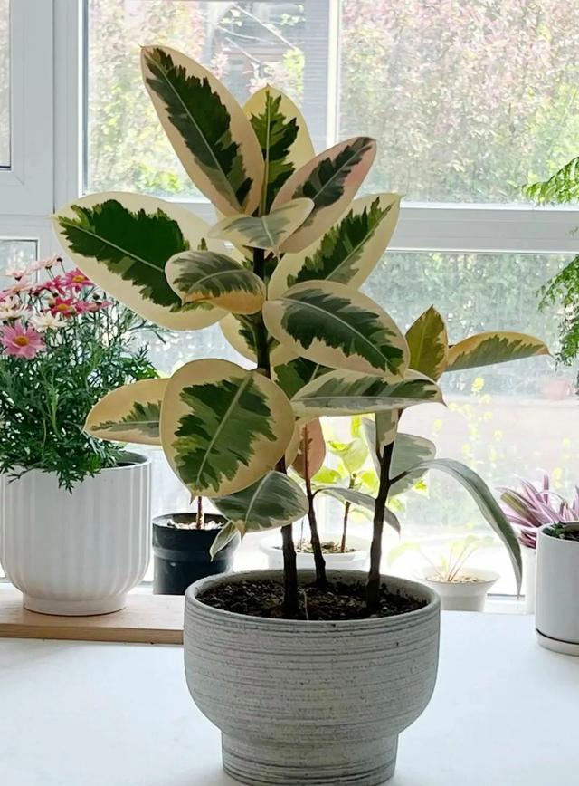 金錢樹的葉片質地肥厚,表皮油亮油亮的,很有裝飾性,就像串起來的錢幣,也是寓意財富的一種象征。金錢樹養在書房,客廳都非常美觀。 金錢樹對環境的適應能力強,但是也很怕冷,在溫度降低的時候,會發現它的生長速度變得很遲緩,可能是進入休眠了,所以對水分和養分的需求量并不大,除了要斷肥之外,也要少澆水。如果溫度低于10度以下,一個月澆一次就夠了,這樣才能讓它安安靜靜的過冬。 橡皮樹