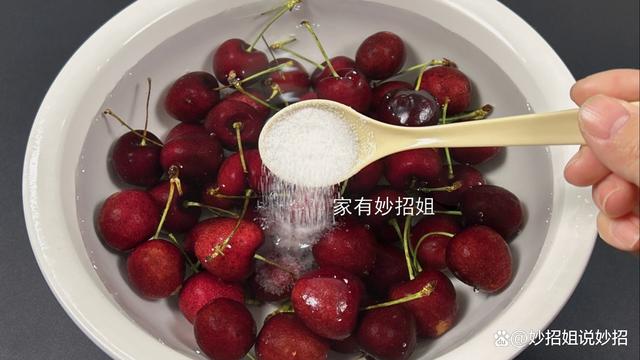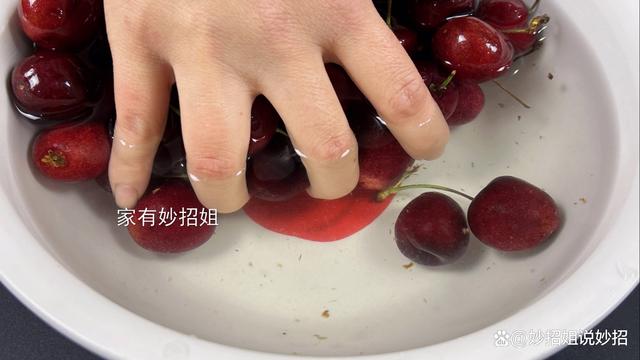 接下來,我們再用手將車?yán)遄雍唵蔚臄嚢枰幌拢估锩娴氖雏}和小蘇打充分的溶解在水中。在清洗車?yán)遄拥臅r候我們要注意,不要提前把果蒂給它摘掉了。因為我們一旦把果蒂摘掉后,就會在車?yán)遄拥谋砻媪粝聞?chuàng)口,而車?yán)遄記]有經(jīng)過清洗,這樣就會使附著表面的一些臟東西,通過創(chuàng)口對里面的果肉造成二次污染。攪拌好后,就讓車?yán)遄釉谶@個水中浸泡上7~8分鐘。