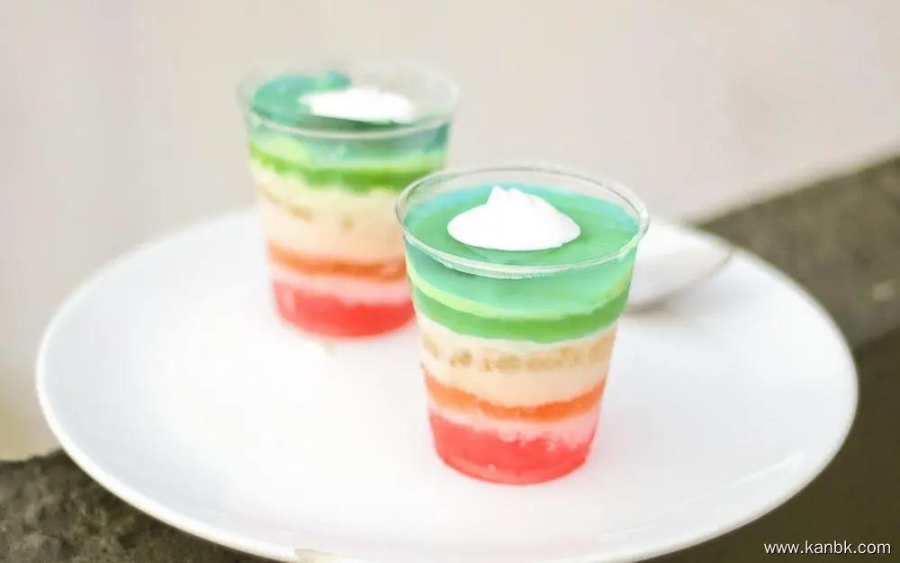 制作彩虹果凍的步驟如下: 1.準備所需材料,包括明膠粉、糖、水、食用色素和各種口味的果汁。 2.將明膠粉均勻地撒在一杯水中,讓其自然膨脹5-10分鐘。 3.將糖和剩余的水加熱至糖完全溶解,然后加入膨脹的明膠粉,攪拌直到完全溶解。 4.分別將果汁分成五個小碗中,每個碗中加入不同顏色的食用色素并攪拌均勻。 5.將明膠混合液均勻地分成五份,倒入五個不同顏色的果汁中,攪拌均勻。 6.將每種顏色的果汁混合液倒入容器中,依次排列成彩虹的顏色,每層需要先冷卻凝固才能倒入下一層。 7.將果凍放入冰箱中冷藏4小時以上,直到完全凝固為止。 8.取出果凍,用刀子沿著邊緣輕輕切開,倒扣在盤子上即可食用。 注意事項: 1.逐層倒入果汁混合液時,要確保每層都已經完全凝固才能倒入下一層。 2.每一層果汁混合液要均勻地倒入容器中,以免出現顏色不均的情況。 3.可以根據個人喜好選擇不同口味的果汁,并使用不同的食用色素調節顏色。 希望這些步驟對您有幫助,祝您制作成功! |