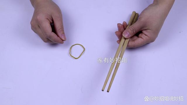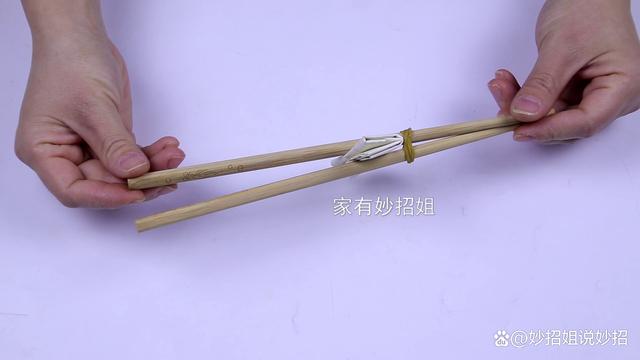 方法一:筷子法。 我們先準備一雙筷子和一根皮筋,用皮筋將兩根筷子綁在一起。我們的筷子一般都是一頭大一頭小的,將皮筋固定在筷子靠近小頭的那一端。