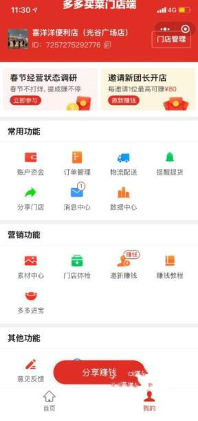 改版后的多多買菜門店端后臺: