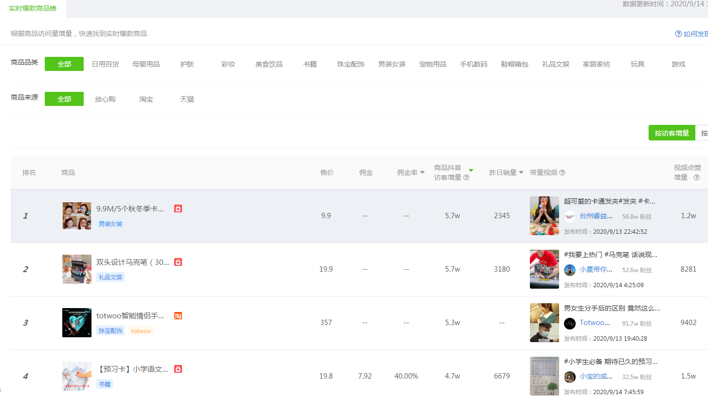 如果,沒有什么節假熱點可以蹭,大家也可以利用一些第三方工具查詢實時爆款商品榜單,目前最新的爆款商品榜如下: