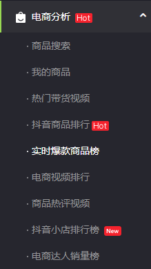 這款第三方工具不僅可以查詢實時爆款商品,還可以查詢熱門帶貨視頻、抖音商品排行榜、抖音小店排行榜等等內容。