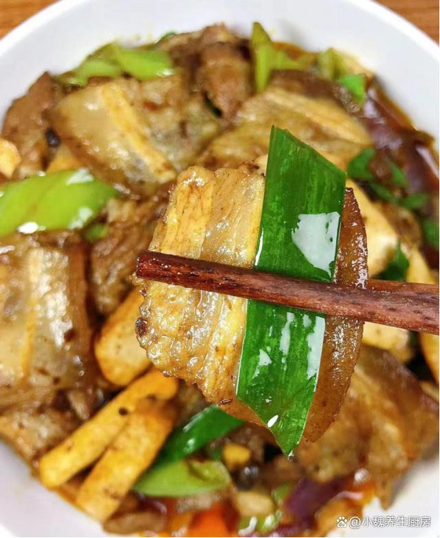 5:鍋中慢慢燒熱,加上少許食用油,倒入五花肉快速爆炒,將五花肉的油脂炒出來(lái),讓色澤微微焦黃,放入一些蔥姜蒜爆香。 6:加上豆豉,加上一小勺豆瓣醬炒香,放入洋蔥塊和青椒塊,調(diào)到大火快速爆炒,讓香味都激發(fā)出來(lái)。 7:最后放入香干條,加上一些青蒜苗,腌制鍋邊加上少許水,大火快速爆炒2分鐘,喜歡吃辣的小伙伴,可以加上一些辣椒油。 8:加上半勺生抽和蠔油,加上雞精,食鹽和白糖,用鍋鏟快速翻炒幾下,嘗一嘗咸淡,適當(dāng)調(diào)整咸淡味道,翻炒幾下出鍋,這道蒜苗香干炒五花肉就出鍋了。 蒜苗香干炒五花肉是我家老公最愛的下飯菜,香辣開胃,香噴噴出鍋,香干鮮嫩可口,五花肉肥而不膩,吃起來(lái)味道太絕了,一盤可以吃幾碗飯,內(nèi)行人特別喜歡吃。 小伙伴們,你們是否喜歡吃這道蒜苗香干炒五花肉呢?(文中配圖都出自網(wǎng)絡(luò))