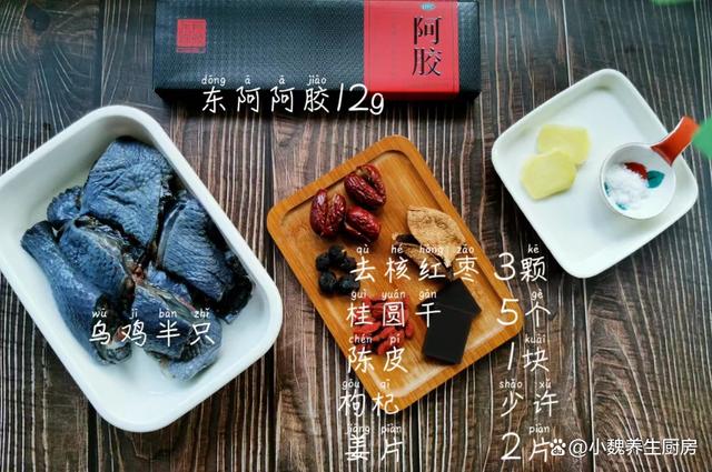 貧血最怕喝“這碗湯”,秋季要常喝它,營養極高,補氣補血,臉色更紅潤。隨著時間的推移,轉眼就來到了9月份下旬,很多人都喜歡春天和秋天,小編獨愛秋天,秋天是豐收的季節,天氣非常舒服,不冷也不熱,因此小編最愛秋天。現在正值秋意最濃郁的時候,外面的樹葉都凋落了,天氣也開始逐漸變涼,空氣里很干燥,皮膚容易缺水,嗓子不舒服,手腳出現冰涼的狀況,許多女性朋友容易出現貧血的癥狀。  秋季是進補的時機,錯過秋天進補時機,冬天要受苦,我們要改善好自己的飲食,少吃大魚大肉,多喝各種溫補的鮮湯,比如說這款阿膠紅棗桂圓烏雞湯,主要采用烏雞,桂圓,紅棗制作而成,堪稱天然的“補血湯”,補血養顏,增強身體抵抗力,讓你秋冬季節少生病。秋不補,冬受苦!建議要多喝“這湯”,補氣補血,臉色更紅潤! 【阿膠紅棗桂圓烏雞湯的正確做法】食材明細:選購新鮮烏雞半只(烏雞又叫黑腳雞, 體型小,頭小頸短,肉質烏黑,用來煲湯很合適,是養身體的上好佳品,補腎益氣,對女性貧血很有好處),阿膠少許,陳皮6克左右,生姜一大塊,若干個桂圓,紅棗若干個,冷水適量,溫水足量,優質枸杞子一小把,食鹽少許,料酒若干,半勺胡椒粉,大蔥半根,食鹽若干,其他調味品。