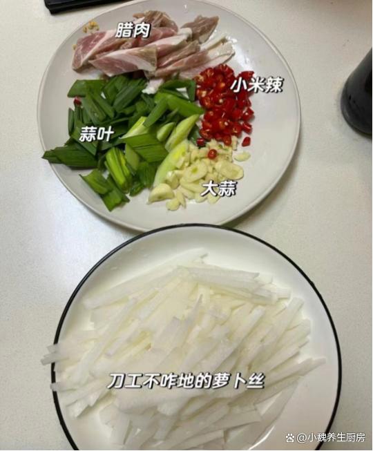 進(jìn)入到9月下旬,邁入到秋天最舒服的日子,天氣逐漸開始降溫,我們脫下了薄衣服,穿上了長袖和外套,馬上要迎來中秋節(jié)氣,會(huì)放三天小長假,這個(gè)時(shí)候是一家人團(tuán)聚的日子,不用考慮工作的事情,可以好好休息幾天。最近一直很忙,很少給孩子做飯,最近聽說預(yù)制菜特別“火”,現(xiàn)在許多外賣也開始用預(yù)制菜,我們家對此存有疑慮,不想讓孩子吃,更別提讓預(yù)制菜進(jìn)入校園了,基本上很少點(diǎn)外賣。我們家里的人,雖然非常忙碌,但是還是不建議吃預(yù)制菜,自己簡單用新鮮食材做菜,吃起來很健康,家里人都開心。還過一些日子,總是擔(dān)心節(jié)氣期間,不知道吃什么,可以給家里人試試這菜——蒜苗蘿卜絲炒臘肉,香味撲鼻,好吃又解膩。秋天,這菜記得端上桌,10分鐘就出鍋,解饞開胃,招待客人有面子。