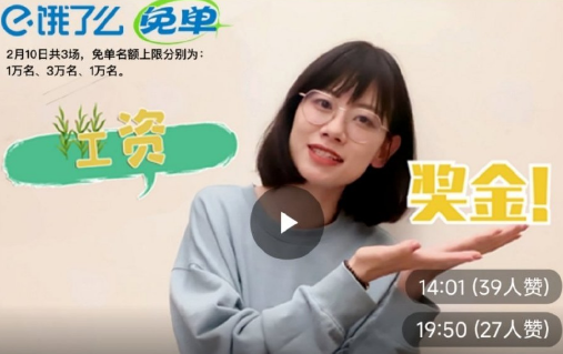 2月10日餓了么免單時間20232.10號3場5萬名額時間 第一場:9:05 (1w) 第二場:14:01(3w) 第三場:17:01/19:05(1w) 1、周期內免單的設備可以隔天換號買 2、名額內取消的賬號隔天也可以免 3、一周期(2.6-2.12)一個賬號只能免單一次,PS:免單就是已成功到賬