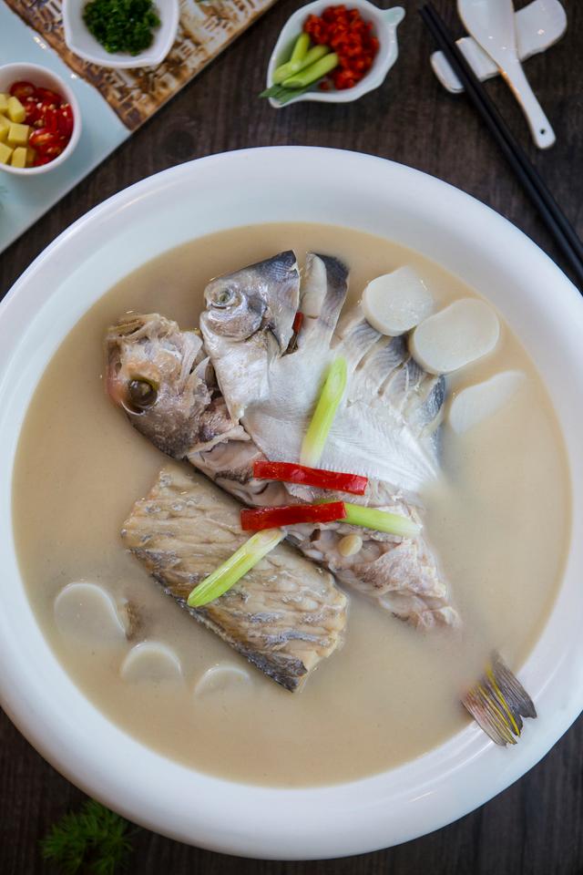 第二碗湯是白蘿卜鯽魚湯。這道湯品具有潤肺、化痰、止咳、利尿等功效。 1.準備食材:鯽魚、白蘿卜、生姜、香菜、食用油、鹽。 2.將鯽魚去鱗、去內臟,洗凈備用。 3.將白蘿卜去皮,切成細絲備用。 4.生姜切成片備用。 5.在熱鍋中倒入食用油,放入姜片煸炒出香味。 6.加入適量清水,大火燒開后放入鯽魚,煮至魚肉變白。 7.加入白蘿卜絲,繼續煮至白蘿卜熟軟。 8.最后加入鹽調味,撒上香菜即可出鍋。