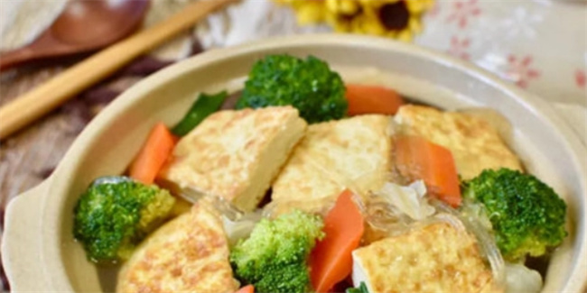 一、蔬菜豆腐煲的制作食材: 1.主要食材: - 1盒雞蛋豆腐 - 100克高麗菜 - 20克紅蘿卜(切菱形片) - 50克花椰菜 - 1個(gè)冬粉 - 5朵新鮮香菇 - 4片姜 - 10克蔥段 2.調(diào)味料:(www.wS46.com) - 1小匙鹽 - 1大匙蠔油 - 1/2小匙白胡椒粉 - 300cc自制蔬果高湯
