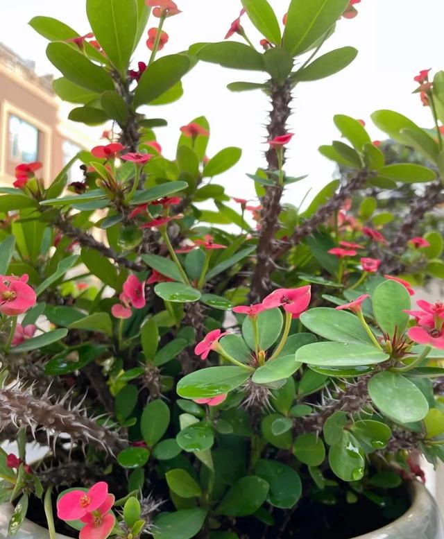 虎刺梅是一種常綠灌木植物,它的花朵緊緊的擁抱在一起,一簇一簇的十分美麗,顏色有粉色,有黃色,有白色,十分可愛。它的生命力極其強悍,可以存活二三十年,生長速度慢,這也讓我們在修剪方面很省事。它的耐旱性,耐寒性,都很理想,這也成為了很多懶人養(yǎng)花的首選。而虎刺梅的花期也是非常驚人的,若保證白天和夜晚有一定的溫差,光照很充足的話,全年都可以開花,也是典型的開花勞模,不得不讓人愛。因為它在惡劣的環(huán)境中也能生存,因此,被人們稱為是鐵打的花。 死不了