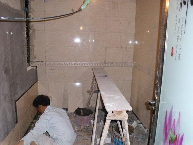 浴室里,墻壁和地板都貼了瓷磚。 因?yàn)閴w與地板磚的粘合方法與次序不同,所以就有了“地壓墻”與“墻壓地”兩種形式。