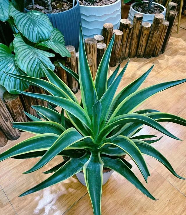 龍舌蘭是有很多品種的,其中最為常見的就是金邊龍舌蘭,它的葉片向四面八方舒展生長,葉片的邊緣是金黃色,內(nèi)部是綠色,黃色和綠色的搭配十分醒目,而整體的造型特別優(yōu)雅,盡顯貴氣,也能展現(xiàn)出一種生命的力量,又健康又有活力,是比較流行的室內(nèi)裝飾盆景。 在我國,與龍有關(guān)的事物都是非常吉祥的,帶有祥瑞的意思,而金邊龍舌蘭便有鎮(zhèn)宅安家,健康長壽,招財納福的寓意,大家可以把它陽布置在客,書房或陽臺,這種植物的外表會使環(huán)境變得生機盎然,也能體現(xiàn)主人的品味不凡。