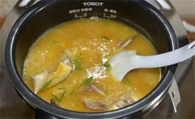 二、制作步驟: 1. 將洗凈的大米與一勺色拉油和少許鹽混合,腌制30分鐘。 2. 將腌制好的大米放入鍋中,并加入適量的水。 3. 蓋好鍋蓋,選擇煮粥功能并啟動。 4. 在煮粥的同時,處理南瓜和海蟹。將南瓜去皮和去籽后切成薄片。 5. 將切好的南瓜片放入蒸鍋中,蒸熟。 6. 將蒸熟的南瓜用料理機打成細膩的糊狀。 7. 用小刷子仔細清洗海蟹,確保干凈。 8. 揭去海蟹殼并去除鰓,然后切成小塊。 9. 當粥煮好后,加入已打好的南瓜糊。 10. 加入切好的海蟹塊和切好的姜絲,蓋上鍋蓋,使用蒸煮功能再煮10-15分鐘。 11. 開鍋后,根據口味加入少許鹽和白胡椒粉進行調味。 12. 攪拌均勻,撒上香蔥碎即可出鍋。