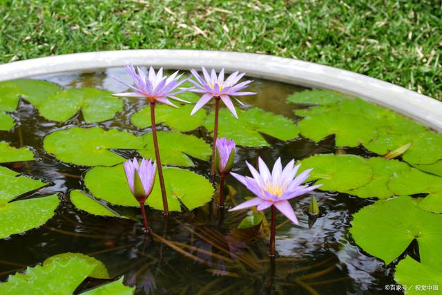 二、準備容器和基質家養水培荷花需要一個適合的容器和基質。容器可以選擇透明玻璃缸或塑料盆,以便觀察荷花的生長情況。基質可以選擇蛭石、珍珠巖、泥炭土按照1:1:1的比例混合,這樣的基質既有一定的保水性,又有良好的透氣性。 三、種植荷花將基質放入容器中,并輕輕壓實。 將荷花苗放入容器中,用基質固定好。注意不要埋得過深,以露出荷葉為宜。 加入適量的水,使基質濕潤即可。 四、養護管理光照:荷花需要充足的陽光才能生長良好。如果放在室內,應放在光線充足的地方。如果放在室外,則應選擇陽光充足的位置。
