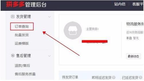 1、打開并登陸拼多多商家后臺,在左側(cè)找到并點擊“訂單查詢”只有知道店鋪是否有訂單時才能決定是否需要發(fā)貨操作。