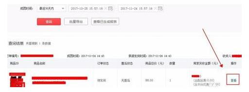 3、點擊后進入如下窗口,在此窗口中可以看到需要發(fā)貨的訂單,并在此訂單最右側(cè)找到并點擊“查看”按鈕,進行查看此訂單明細信息。這時候,你要在阿里巴巴,后者你代銷的網(wǎng)站下單,信息填寫你顧客的電話,地址,收件人。等待賣家發(fā)貨,一旦賣家發(fā)貨后,復制訂單號和物流公司名稱。