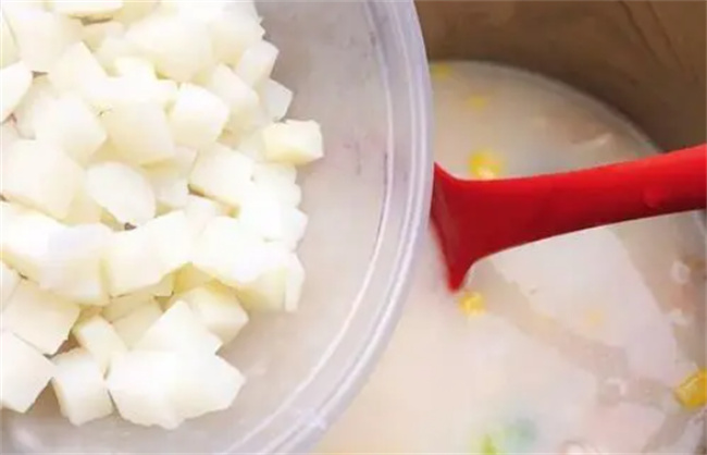 二、制作步驟: 1. 食材準備: 將馬鈴薯蒸熟,鮭魚用鹽、胡椒粉和白酒腌漬。 2. 炒制奶油面糊: 在冷鍋中加熱奶油,小火融化奶油后加入面粉,翻炒均勻形成奶油面糊。 3. 加入液體: 熄火后,加入冷開水或雞高湯,攪拌均勻,確保沒有結塊。需要時可過濾。 4. 煮玉米濃湯: 將生玉米粒加入湯中,用中火煮,攪拌以防燒焦。 5. 烹飪鮭魚: 湯變濃稠后,加入腌漬好的鮭魚塊,煮拌均勻。 6. 加入蔬菜和馬鈴薯: 加入青花菜和紅蘿卜片,再加入熟的馬鈴薯,攪拌均勻。 7. 調味品: 加入帕瑪森起司粉、鹽和黑胡椒粉,根據口味調整。