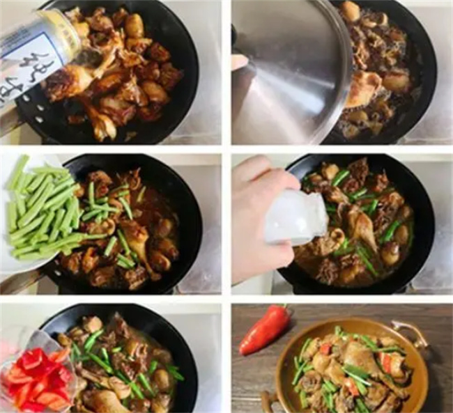 二、制作步驟: 1. 準備鴨子: 將鴨子切塊后洗凈,在冷水中焯煮,加入適量高度白酒和姜片去腥,焯出血沫后洗凈備用。 2. 烹煮鴨肉: 燒熱鍋,加入適量的油,將鴨子塊下鍋翻炒,直至微微出油后加入姜片和花椒,繼續(xù)翻炒。 3. 調(diào)味: 在鍋中加入適量的冰糖,醬油和生抽,翻炒均勻。 4. 添加啤酒: 加入1小罐啤酒,大火煮開后轉小火,加蓋燜煮30分鐘。 5. 加入四季豆: 加入四季豆進鍋繼續(xù)燜煮5分鐘。 6. 調(diào)味收汁: 加入適量的鹽和胡椒粉調(diào)味后翻炒均勻,最后加入紅椒片,大火收汁即可。